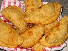 Hervir el agua con la leche. Poner la manteca, sal, harina en la mesa. Agregar el agua con la leche hirviendo rápidamente, revolviendo con una cuchara de la palo, no se puede dejar enfriar la masa. Mezclar la crema con el queso hasta que queden bien incorporado. Hacer bolitas con la masa. Uslerear en forma circular. En el centro poner una cucharada de la mezcla de queso. Cerrar, apretar los bordes y freír en aceite muy caliente.